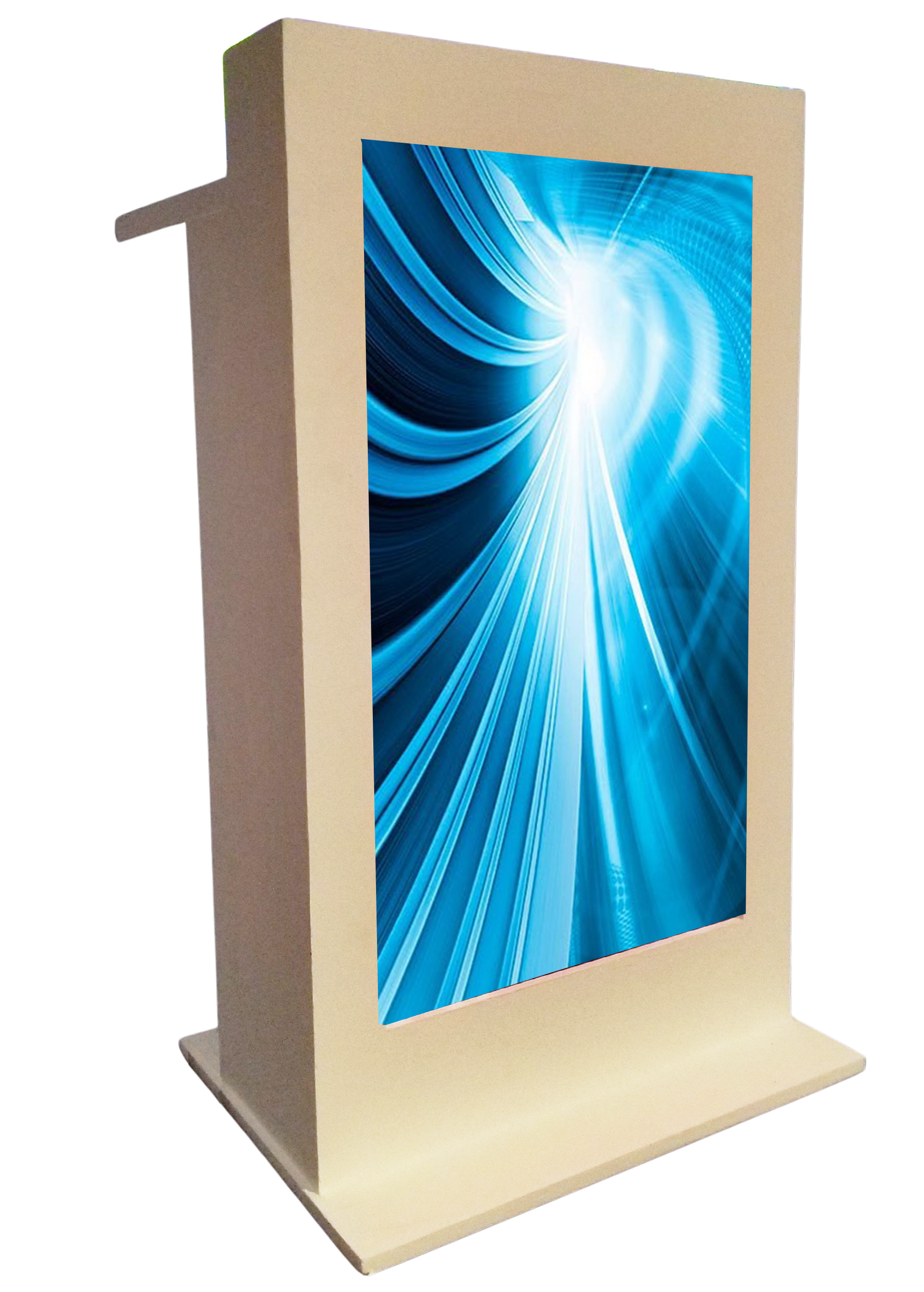 Pantalla de 43" que mira hacia el público para visualización de presentaciones.