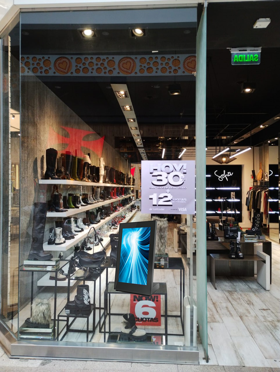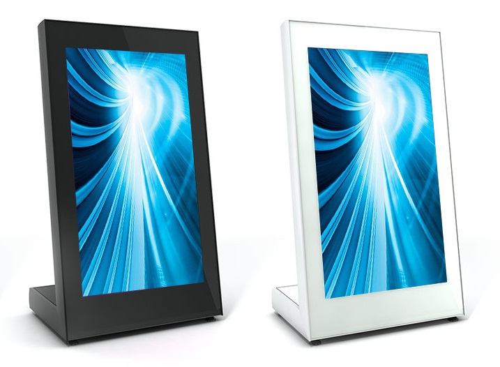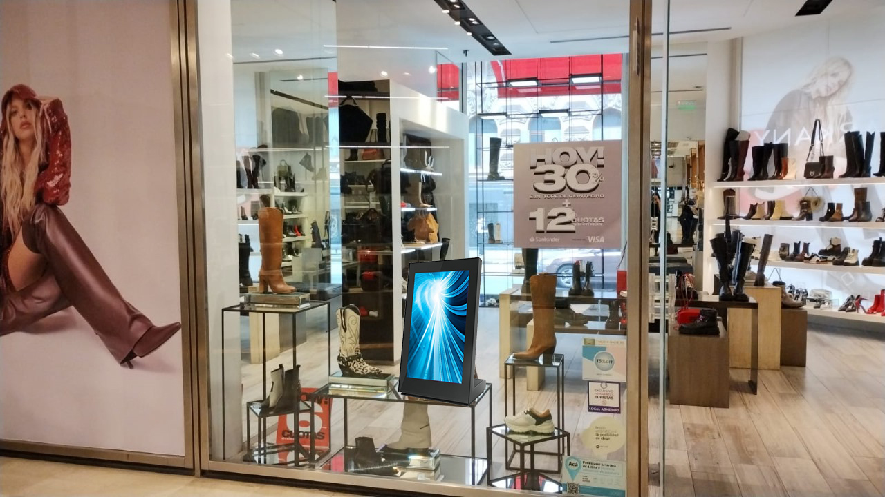 Formato pequeño ideal para poder ser apoyado en mostradores, estantes, mesas y escritorios. Perfecto para espacios reducidos que requieren cartelería digital o interacción táctil.