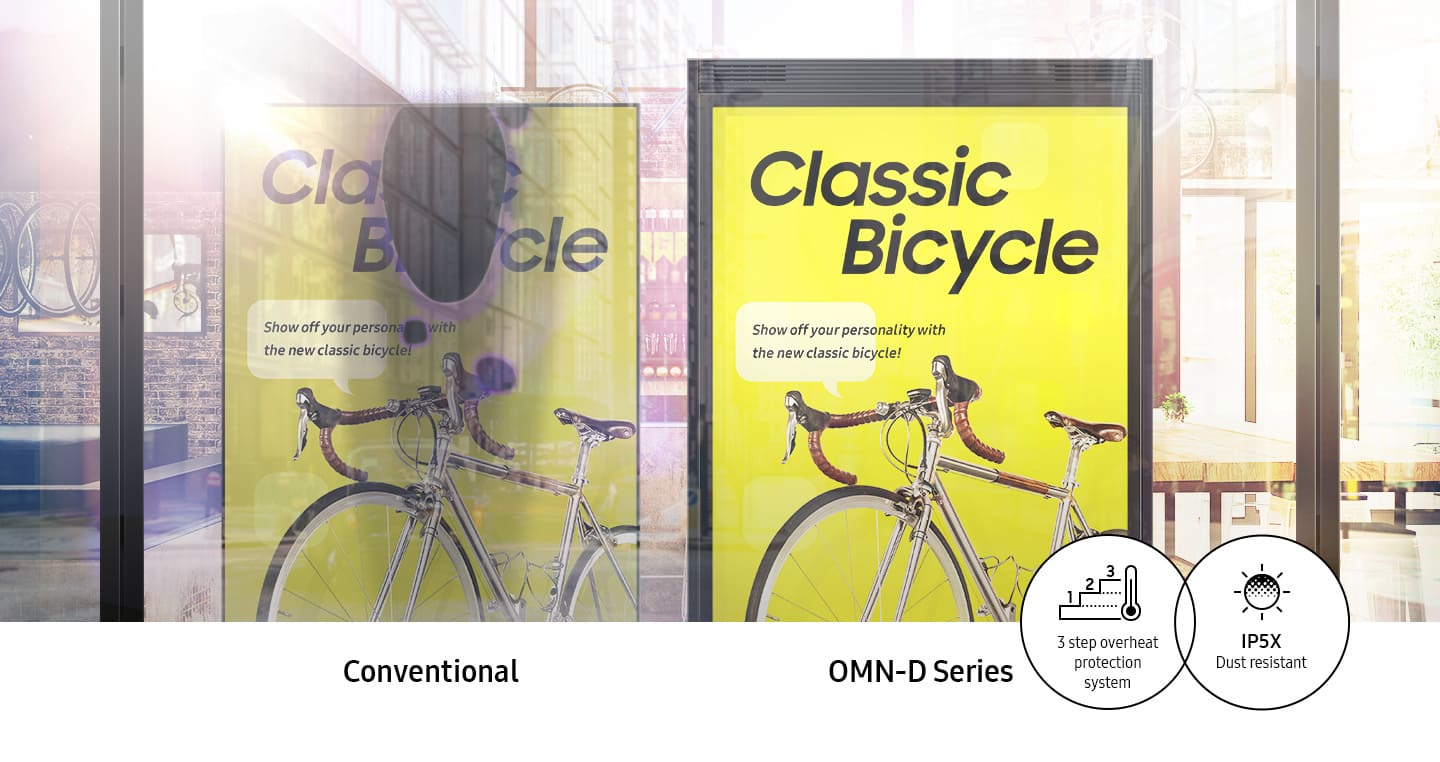 Con la protección antipolvo validada por IP5X y un proceso propio de 3 pasos para evitar daños por sobrecalentamiento, las pantallas Samsung soportan la prueba del paso del tiempo.